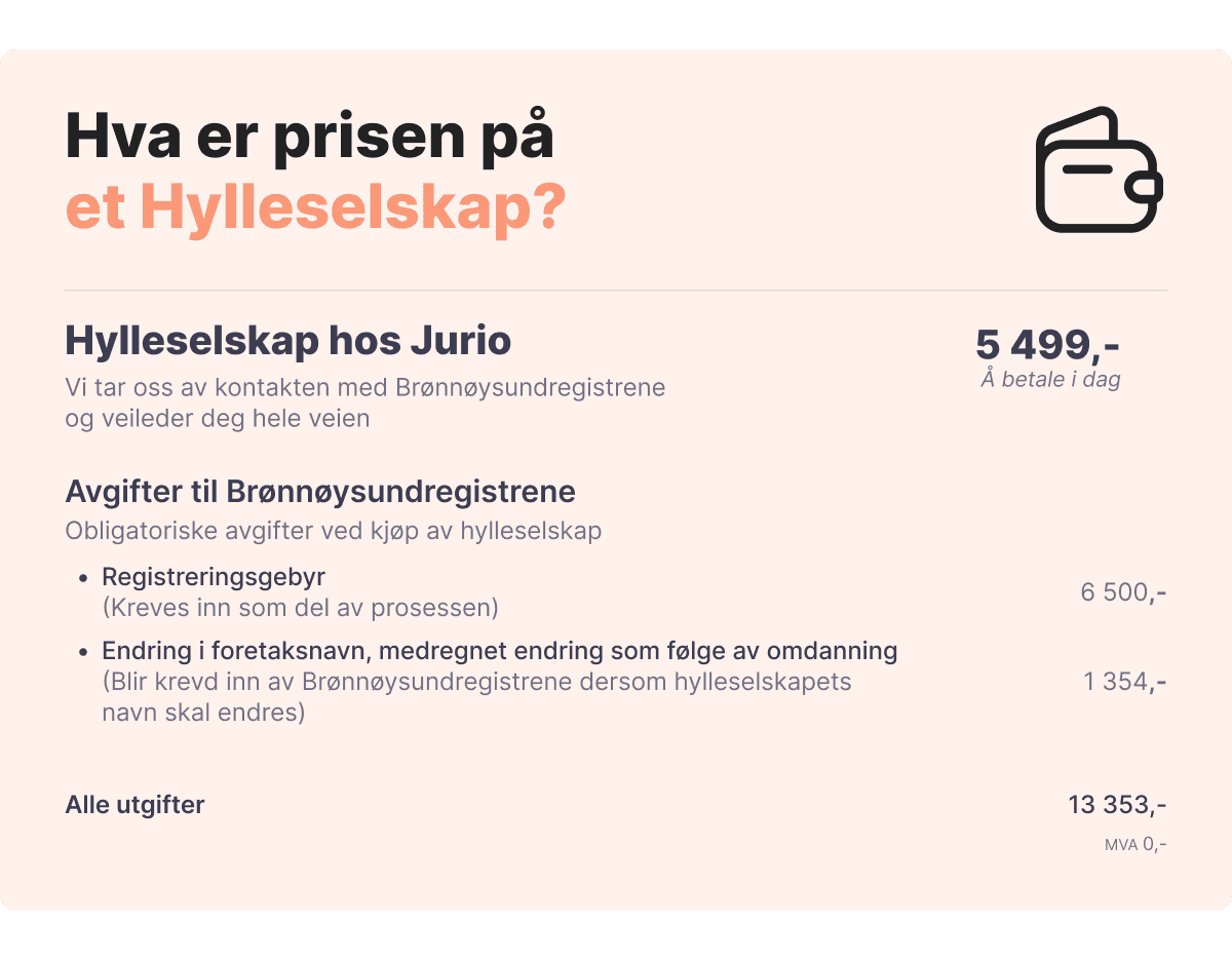 Start virksomheten din så enkelt som mulig. Med vårt hylleselskap kan du enkelt komme i gang uten unødvendig ventetid. Ut over kontakt med banken har dere muligheten til å håndtere all nødvendig saksbehandling på ett og samme sted. Vi sender deg løpende informasjon gjennom hele prosessen og støtter deg helt til målstreken!