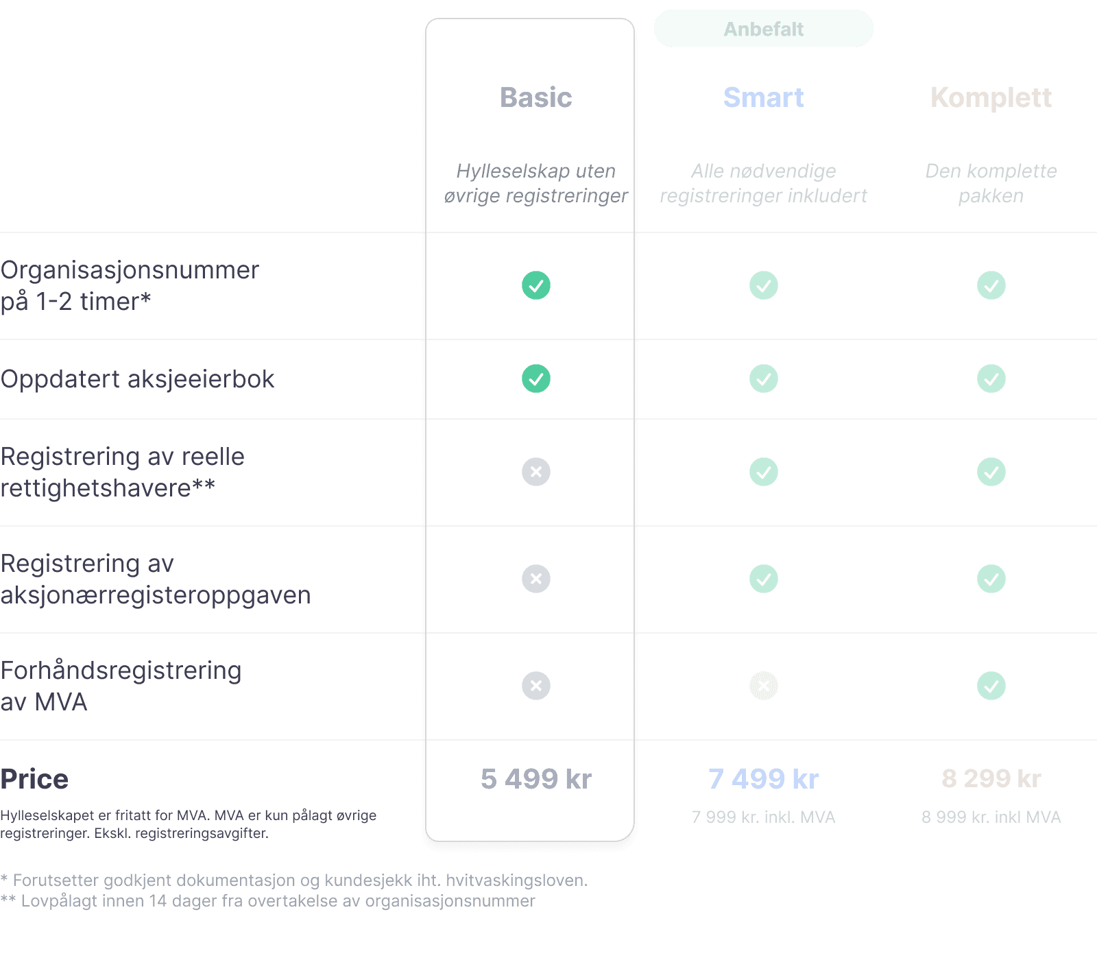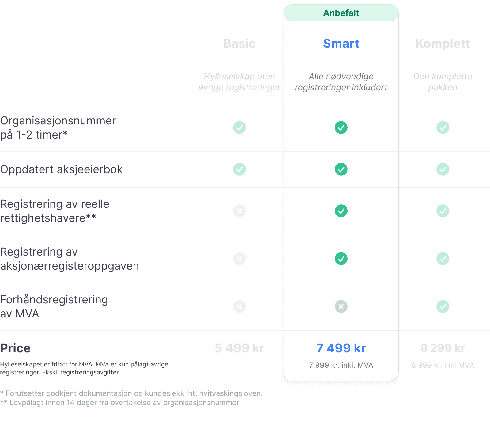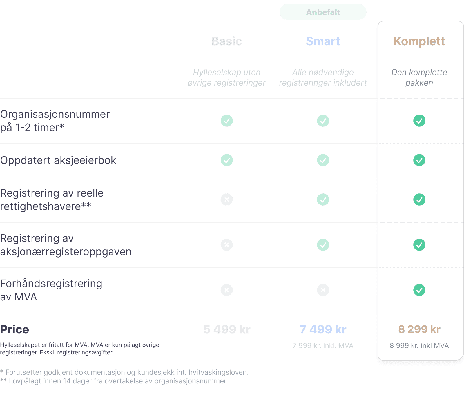 I neste trinn går du videre til betaling. Deretter følger noen supplerende steg, slik som å oppgi detaljer om eiere og styret, samt å opprette en bankkonto for selskapet. Vi vil veilede dere gjennom hele prosessen!
