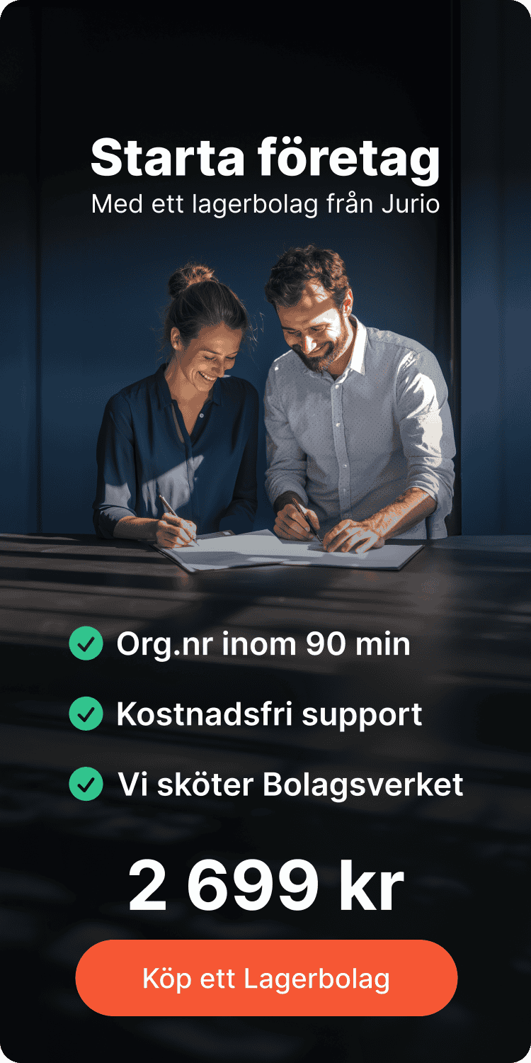 Om du väljer att ta det första steget in i företagslivet med Jurio kan du förenkla processen avsevärt. Utöver att du kan göra uppstarten av ett aktiebolag mycket smidigare, så hjälper vi till med just arbetsgivarregistrering!