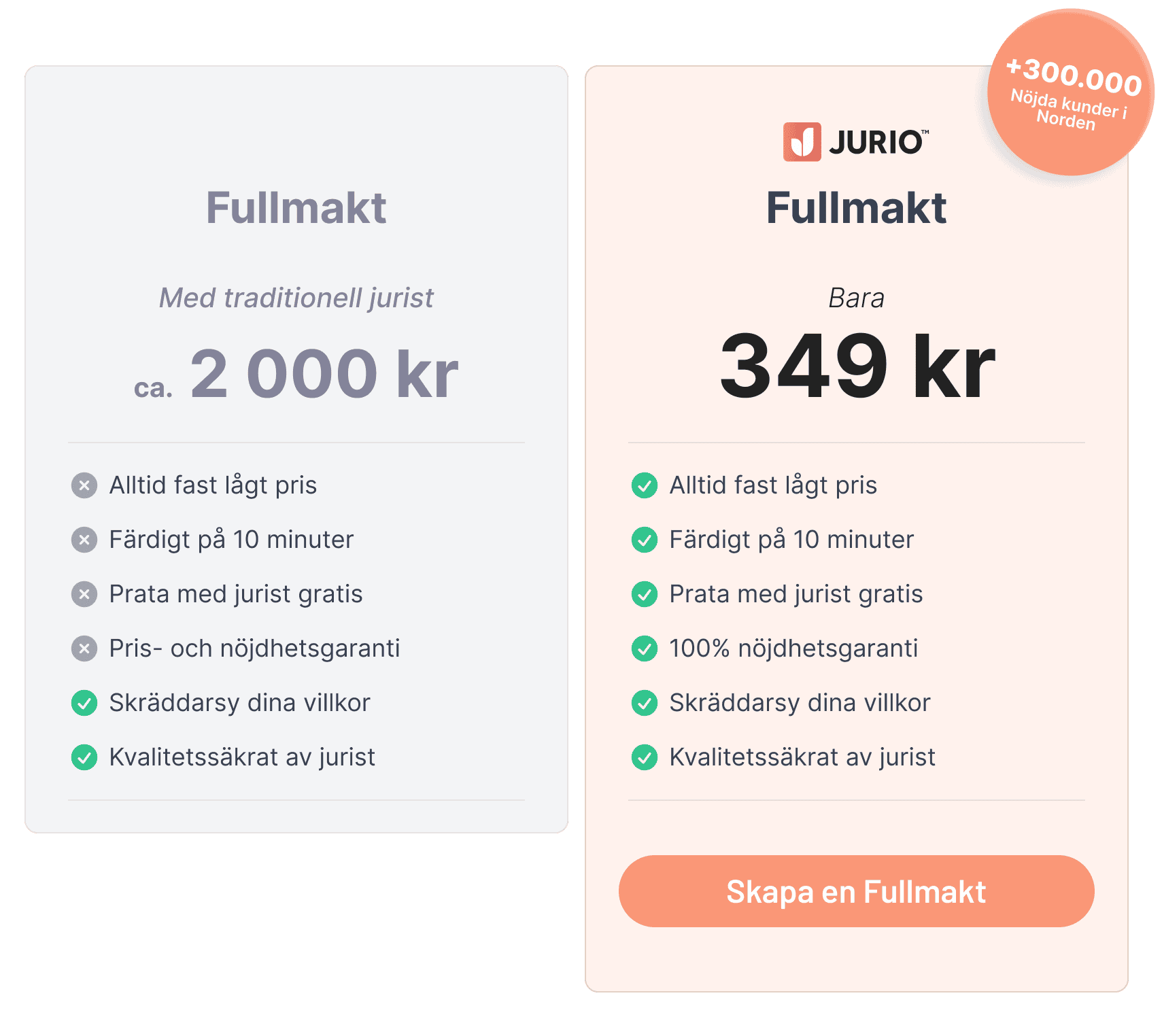 Juridiskt kvalitetssäkrat och nöjdhetsgaranti